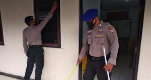 Siwas Polres MTB Melawan Corona Dengan Bersihkan Ruangan Kerja