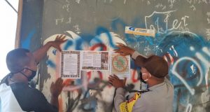 Bhabinkamtibmas Desa Sifnana Tempelkan Maklumat Kapolri Pada Tempat Keramaian