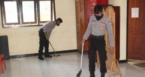 Mencegah Covid 19, Sipropam Polres MTB Rutin Bersihkan Ruangan Kerja