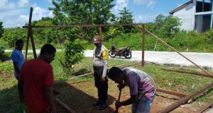 Bhabinkamtibmas Desa Rumahsalut Bersinergis Dalam Pembangunan Posko Covid 19