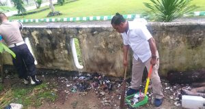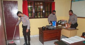 Sitipol Polres MTB Bersih-bersih Antisipasi Virus Corona