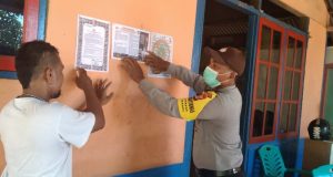 Bhabinkamtibmas Desa Sifnana Tempelkan Maklumat Kapolri Pada Rumah Warga