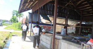 Polres MTB Semprotkan Cairan Disinfektan Pada Area Pasar Omele Sifnana