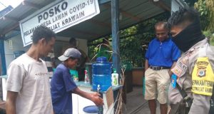 Lawan Covid 19,Bhabinkamtibmas Desa Sangliat Krawain Ajak Warganya Rajin Cuci Tangan