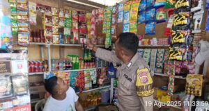 Imbau tidak menjual makanan Kedaluwarsa, Bhabinkamtibmas Olilit Raya 2 Sambangi Pemilik...