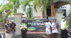 Lewat Spanduk Larangan Mudik, Sat Lantas Polres MTB Sosialisasi Bagi Masyarakat