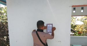 Bhabinkamtibmas Desa Sangliat Krawain Menempelkan Maklumat Kapolri Tentang Cegah Covid 19