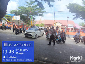 Tribratanews.polrestanimbar.com – Polda Maluku, Kepolisian Resor Kepulauan Tanimbar, Demi terciptanya situasi kenyamanan, keamanan dan ketertiban, Satuan Lalu Lintas Polres Kepulauan Tanimbar lakukan pengamanan (pam) dan pengaturan lalu lintas (Gatur Lalin) di sejumlah Gereja saat ibadah Minggu berlangsung, Minggu (27/04/27).