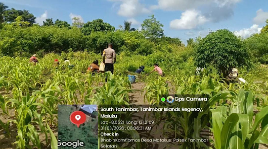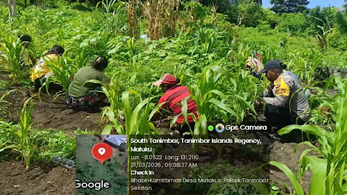 Tribratanews.polrestanimbar.com – Polda Maluku, Kepolisian Resor Kepulauan Tanimbar, Guna mendukung program Ketahanan Pangan Nasional, Personel Bhabinkamtibmas Desa Matakus, Bripka BRIAN CHRISTOFFEL kembali hadir di tengah Masyarakat untuk melaksanakan kegiatan pembersihan sekaligus pemantauan lahan tanaman jagung hibrida di Desa Matakus, Selasa (31/03/26).