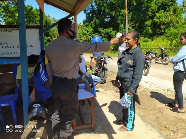 Tribratanews.polrestanimbar.com – Polda Maluku, Polres Maluku Tenggara Barat, Jumat Tanggal 24 April 2020, pukul 08:00 Wit, bertempat di Desa Watidal tepatnya di Posko Relawan Covid 19 Desa Watidal Kecamatan Tanimbar Utara, Kabupaten Kepulauan Tanimbar.Bhabinkamtibmas Desa Watidal Bripka Edwin Leka Bersam dengan Tim Relawan Covid 19 Desa Watidal melakukan Pemeriksaan kepada para Warga Desa maupun Setiap Orang yang hendak melakukan aktifitas keluar masuk Desa Watidal.