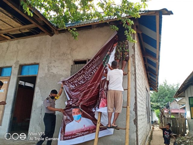 Pasang Baliho New Normal di Desa Bhabinkamtibmas Welutu gencar sosialisasi