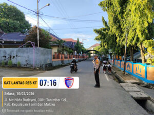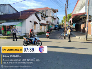 Tribratanews.polrestanimbar.com – Polda Maluku, Kepolisian Resor Kepulauan Tanimbar, Satuan Lalu Lintas (Sat Lantas) Polres Kepulauan Tanimbar kembali mengintensifkan kegiatan penjagaan dan pengaturan (Gatur) lalu lintas di sejumlah titik strategis di Wilayah Kota Saumlaki, Kecamatan Tanimbar Selatan, Kabupaten Kepulauan Tanimbar.