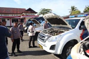 Tribratanews.polrestanimbar.com – Polda Maluku, Polres Kepulauan Tanimbar, Guna memastikan kendaraan layak jalan dalam membantu pelaksanaan tugas, Kepolisian Resor (Polres) Kepulauan Tanimbar melakukan pemeriksaan dan pengecekan kendaraan dinas personel, Rabu (05/07).