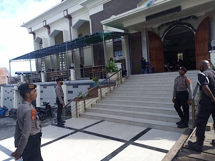 Sementara itu, dengan menggunakan kendaraan dinas berupa sepeda motor, Personel Sat Samapta Polres Kepulauan Tanimbar terlihat menyambangi sejumlah Gereja guna memantau serta memberikan rasa aman bagi masyarakat yang sedang melaksanakan Ibadah di hari Minggu.