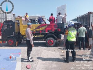 Tribratanews.polrestanimbar.com – Polda Maluku, Polres Kepulauan Tanimbar, Satuan Lalu Lintas melalui Satgas Kamseltibcarlantas mengawal ketat pendistribusian Logistik Pemilu yang dijemput dari Pelabuhan Yos Sudarso Saumlaki, Kecamatan Tanimbar Selatan, Kabupaten Kepulauan Tanimbar, Sabtu (04/11).