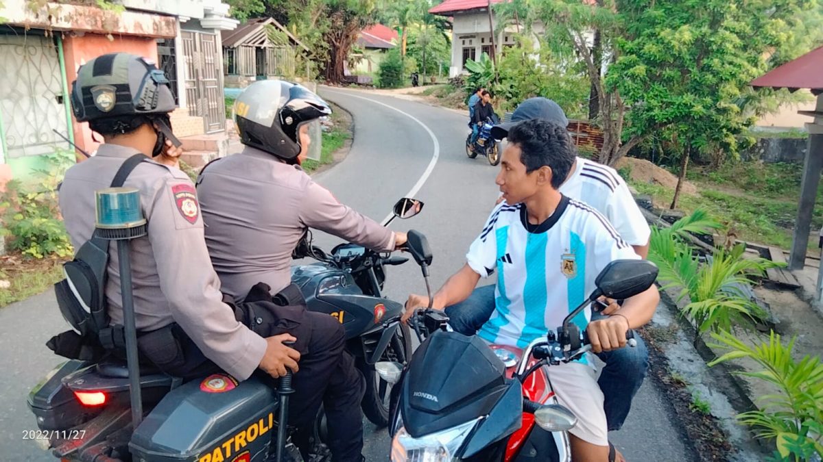 Tribratanews.polrestanimbar.com – Polda Maluku, Polres Kepulauan Tanimbar, tindaklanjuti Progaram Quick Wins Presisi melalui petunjuk dan arahan Kapolres Kepulauan Tanimbar AKBP Umar Wijaya, S.I.K., personil Samapta continue lakukan Patroli pada tempat berkumpulnya wagra untuk melakukan nonton bareng (Nobar) Piala Dunia 2022 Qatar, dikota Saumlaki dan sekitarnya, Minggu (27/11) dini hari.