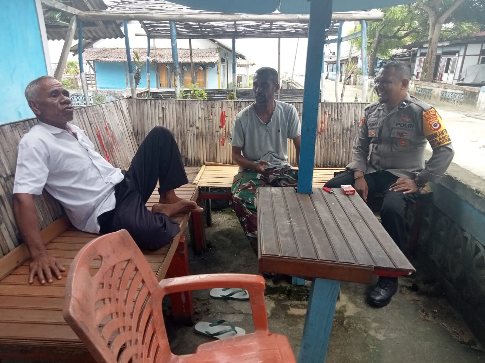 Bhabinkamtibmas Desa Amdasa Aipda S. A. Latiheru mengajak Warga yang dikunjunginya yang adalah seorang Nelayan Tradisional untuk sementara waktu tidak melakukan kegiatan melaut, mengingat situasi dan cuaca buruk yang sering terjadi belakangan ini.