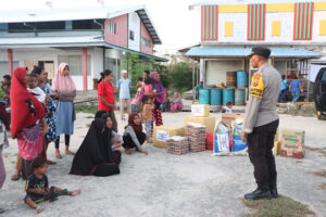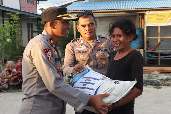 Sehingga sebagai wujud kepedulian Polri terhadap Masyarakat, Polres Kepulauan Tanimbar lewat uluran tangan kasih memberikan bantuan yang mencakup berbagai kebutuhan dasar seperti beras, telur, mie instan, Pampers Bayi maupun pakaian bekas, sekaligus memberikan semangat moral bagi para korban agar tabah menghadapi musibah yang dialaminya.