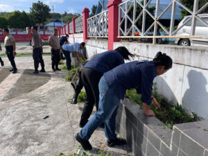 Tribratanews.polrestanimbar.com – Polda Maluku, Kepolisian Resor Kepulauan Tanimbar, Sambut hari Bhayangkara ke-79, Jajaran Polres Kepulauan Tanimbar lakukan gotong royong dengan bersih-bersih lingkungan Lapangan Mandwriak Saumlaki, Kecamatan Tanimbar Selatan, Kabupaten Kepulauan Tanimbar, Kamis (26/06/25) pagi.