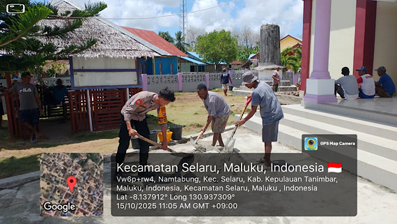 Tribratanews.polrestanimbar.com – Polda Maluku, Kepolisian Resor Kepulauan Tanimbar, Dalam menciptakan hubungan yang harmonis dan meningkatkan pelayanan kepada Masyarakat, Bhabinkamtibmas Desa Namtabung berpartisipasi aktif membantu warga dalam pembangunan tandon air (toren) untuk Gereja, Rabu (15/10/25).