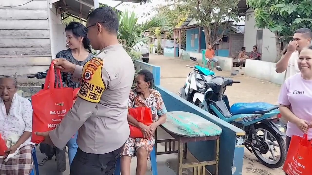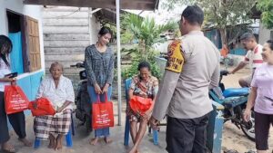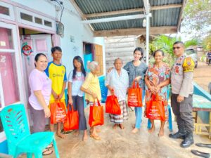 Tribratanews.polrestanimbar.com – Polda Maluku, Kepolisian Resor Kepulauan Tanimbar, Sebagai bentuk kepedulian antar sesama, Ps Kanit II Dalmas Sat Samapta Aiptu BUCE R. LIUFETO berikan bantuan Sembako kepada para Janda, Lansia, Anak Yatim Piatu dan Warga yang kurang mampu secara ekonomi di Desa Watidal, Kecamatan Tanimbar Utara, Kabupaten Kepulauan Tanimbar, Jumat (15/12).