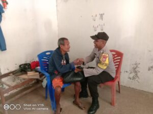 Melalui kunjungannya tersebut, Selain memberikan himbauan kepada Warga Binaannya, Bhabinkamtibmas memberikan bantuan melalui Tali Kasih berupa Sembako kepada 5 (lima) orang Lansia yang kurang mampu.