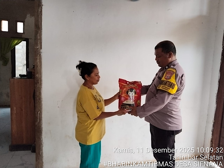 Tribratanews.polrestanimbar.com – Polda Maluku, Kepolisian Resor Kepulauan Tanimbar, Dalam upaya nyata meringankan beban ekonomi Warga kurang mampu di wilayah binaan, Bhabinkamtibmas Desa Sifnana Aipda E.M. TOMHISA memberikan bantuan sembako berupa beras, Kamis (11/12/25).