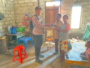 Tribratanews.polrestanimbar.com – Polda Maluku, Polres Kepuluan Tanimbar, kunjungi salah satu Anak Asuh yang tergolong Stunting, Bhabinkamtibmas Desa Werain Briptu Wanto Isran berikan bantuan asupan Gizi, yang bertempat di Rumah Bapak Krismi Petra Lamerburu tepatnya pada RT 01 RW 01, Desa Werain, Kecamatan Selaru, Kabupaten Kepulauan Tanimbar, Sabtu (19/08).