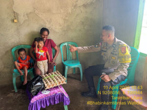 Tribratanews.polrestanimbar.com – Polda Maluku, Kepolisian Resor Kepulauan Tanimbar, Sebagai upaya untuk pencegahan terhadap Stunting, Bhabinkamtibmas Desa Watidal, Polsek Tanimbar Utara, Aipda M. SERHALAWAN melakukan aksi nyata dengan memberikan paket asupan gizi kepada salah satu Anak terdampak Stunting, Kamis (10/04/25).