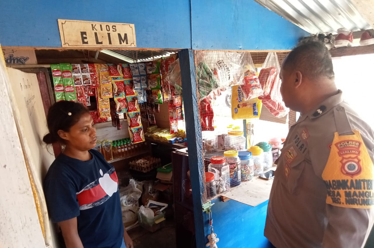 Tribratanews.polrestanimbar.com – Polda Maluku, Polres Kepulauan Tanimbar, Guna mewujudkan situasi wilayahnya tetap kondusif serta peduli terhadap peredaran Miras dan bebas dari makanan kedaluarsa, Bhabinkamtibmas Desa Manglusi Aipda N. Kundre Melaksanakan giat Sambang dalam bentuk kunjungan ke Kios Elin milik ibu. Yustina Batmomolin, yang merupakan Warga RT: 002/ RW 01, Desa Manglusi, Kecamatan Nirunmas, Kabupaten Kepulauan Tanimbar, Senin (24/07).