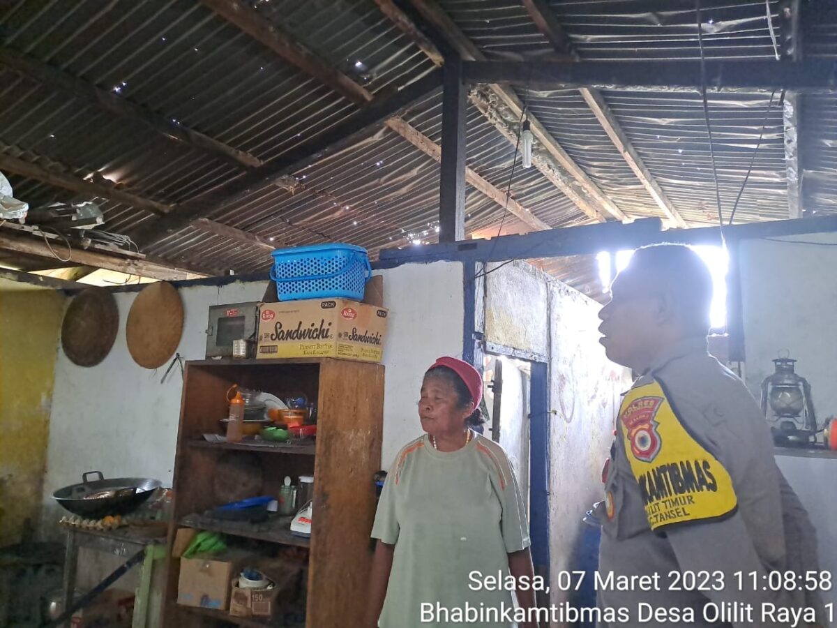 “Setiap kali turun hujan atau Angin kencang, keluarga tersebut tidak bisa beristirahat dengan baik serta tidak bisa melakukan aktifitas di dalam rumah akibat atap rumah yang sudah Bocor” ungkap Bhabinkamtibmas.