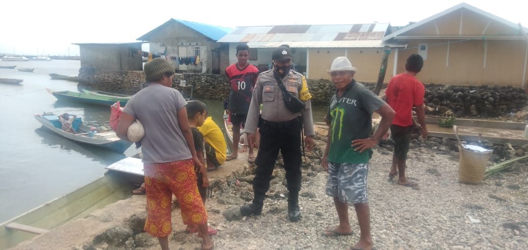 Melihat warganya yang hendak pergi ke kebun menyeberang lautan dengan transportasi laut, di balik cuaca yang sementara dalam keadaan extrim dan tidak bersahabat, Bhabinkamtibmas peduli dan menghimbau agar memperhatikan keselamatan diri dalam berlayar menuju ke kebun.