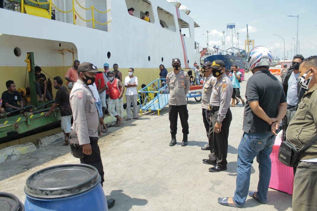 Tribratanews.polrestanimbar.com – Polda Maluku, Polres Maluku Tenggara Barat, Jumat tanggal 30 Oktober 2020, pukul 13.00 wit, bertempat di Pelabuhan Yos Sudarso Saumlaki Kabupaten Kepulauan Tanimbar, kembali dilaksanakan Pengamanan terhadap kedatangan Pelaku Perjalanan dari Wilayah Kota Ambon Provinsi Maluku dan Kota Tual Kabupaten Maluku Tenggara dengan menggunakan KM. Sabuk Nusantara 34.
