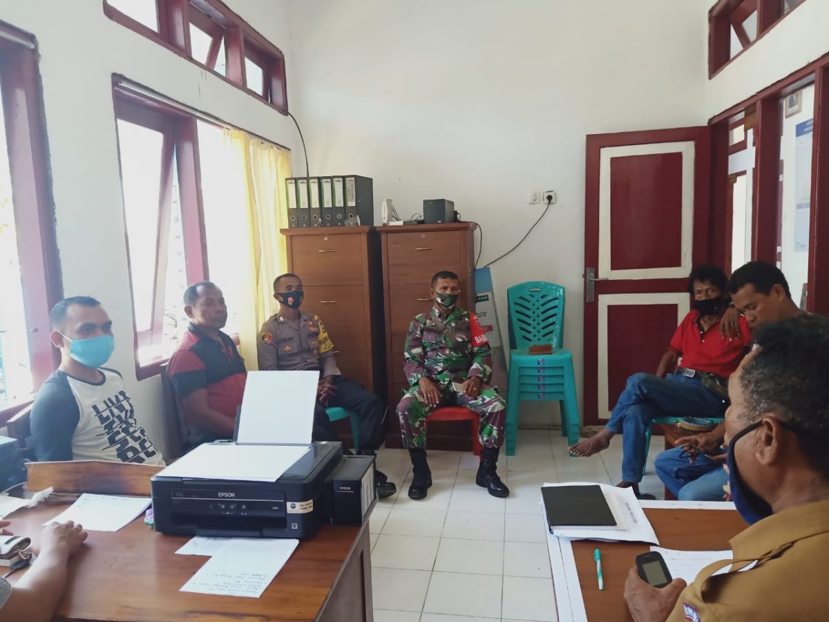 Tribratanews.polrestanimbar.com – Polda Maluku, Polres Maluku Tenggara Barat, Senin 14 September 2020, pukul 11.00 wit, bertempat di Kantor Desa Lauran, Kecamatan Tanimbar Selatan, Kabupaten Kepulauan Tanimbar Bhabinkamtibmas Desa Lauran Bripka Yusup A. Halirat, S.H mengikuti dan mengamankan giat tatap muka bersama Pemerintah desa Lauran dan Babinsa Desa Lauran dalam rangka membahas aksi pendisiplinan Protokoler kesehatan pencegahan penularan dan penyebaran Covid-19 di Desa Lauran dalam rangka mendukung Operasi Yustisi sesuai Instruksi Presiden RI Nomor 6 Tahun 2020.