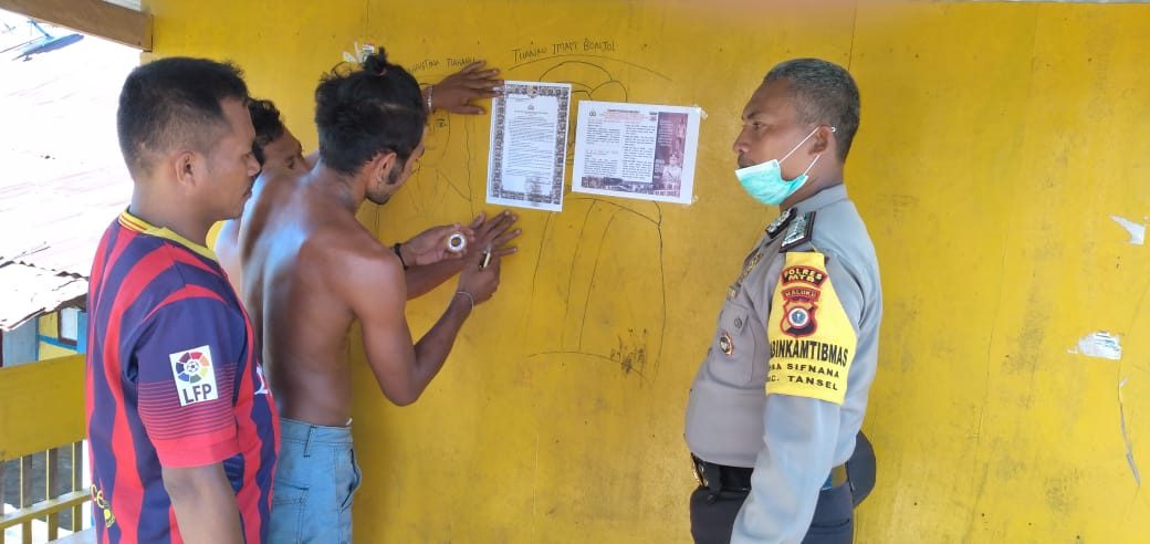 Tribratanews.polrestanimbar.com – Polda Maluku, Polres Maluku Tenggara Barat, Selasa tanggal 28 April 2020, pukul 13.30 wit, bertempat RT 02/RW 001 Desa Sifnana Kecamatan Tanimbar Selatan, Kabupaten Kepulauan Tanimbar. Bhabinkamtibmas Desa Sifnana Bripka Petrus Keliduan, Melaksanakan kegiatan sosialisasi Maklumat Kapolri Nomor : Mak/2/III/2020 Tanggal 19 Maret 2020 Tentang Kepatuhan Terhadap Kebijakan Pemerintah Dalam Penanganan Penyebaran Virus Corona (Covid-19).