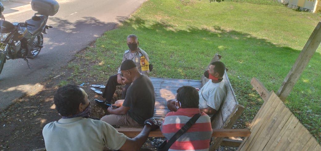 BRIPKA PETRUS KELIDUAN Menyambangi warga RT 19 /RW 004 Desa Sifnana yang sementara berada di Gang depan Rumah Bapak. ANGKI SAMANGUN dan melaksanakan Binluh terkait pencegahan dan penyebaran COVID-19.
