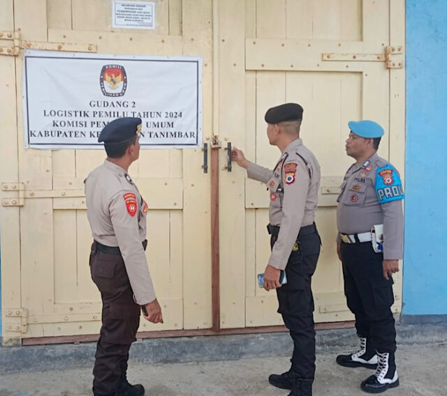 Tribratanews.polrestanimbar.com – Polda Maluku, Kepolisian Resor Kepulauan Tanimbar, Cegah potensi konflik serta gangguan keamanan terhadap Logistik Pemilu, Satgas Preventif Operasi Mantap Brata (OMB) Salawaku 2023-2024 Polres Kepulauan Tanimbar, tingkatan pengawasan dan pengamanan secara intensif pada Gudang Logistik Pemilu.