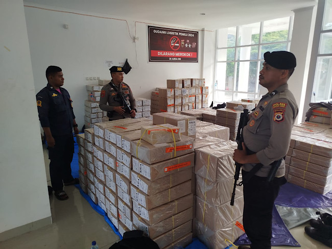 Saat ini logistik Pemilu tersebut sementara berada pada Gudang Logistik KPU yang berlokasi pada halaman Universitas Pattimura Ambon, dengan dikawal ketat oleh 2 (dua) Personel Satgas Preventif Operasi Mantap Praja (OMP) dengan menggunakan senjata lengkap bersama Petugas keamanan KPU Kabupaten Kepulauan Tanimbar.