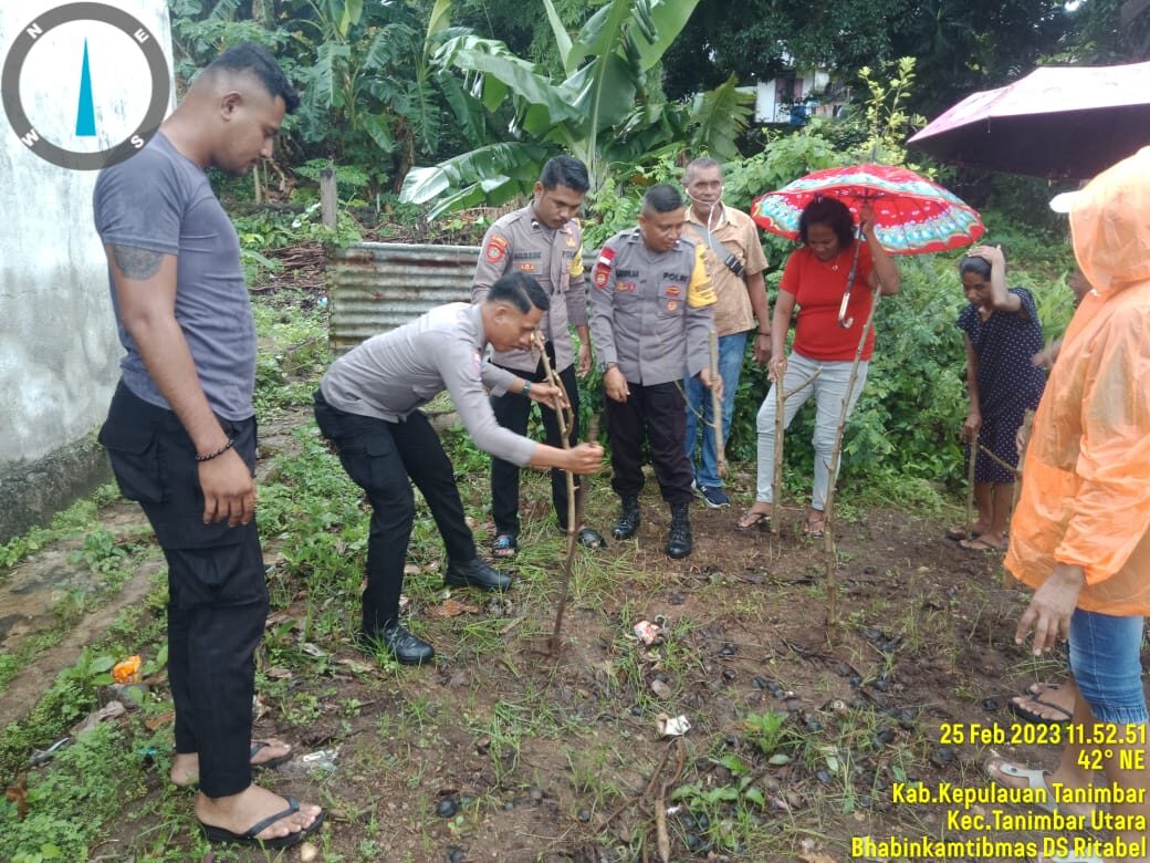 Tribratanews.polrestanimbar.com – Polda Maluku, Polres Kepulauan Tanimbar, Bhabinkamtibmas Bhabinkamtibmas Desa Ridool Aipda H. Kewilaa bersama Bhabinkamtibmas Desa Ritabel Bripda J. Lololuan Melaksanakan Kegiatan Gerakan Tanam Kelor bertempat di Asrama Polsek Tanimbar Utara, Kab. Kepulauan Tanimbar, Sabtu (25/02).