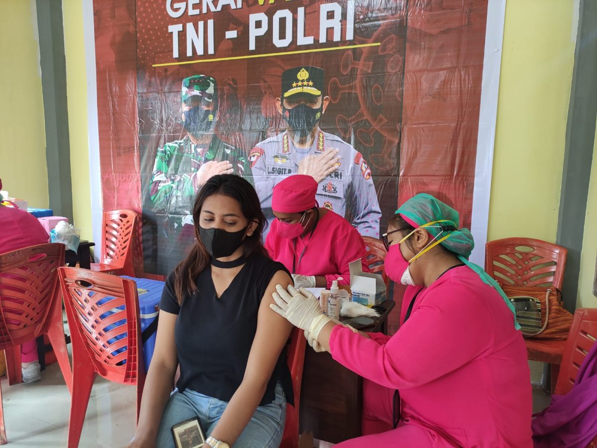 Dengan berkoordinasi dengan Dinas Kesehatan Kabupaten Kepulauan Tanimbar dan menggunakan ketersediaan Stok Vaksin Sinovac yang tersedia, dihari pertama kegiatan Gerai Masker Gratis ini, dengan dibantu oleh petugas Medis dan Personil Polres Kepulauan Tanimbar maupun Bhayangkari cabang Kepulauan Tanimbar yang terlibat sebagai petugas Tracking maupun Vaksinator Polres Kepulauan Tanimbar berhasil memberikan Vaksinasi kepada 334 orang.