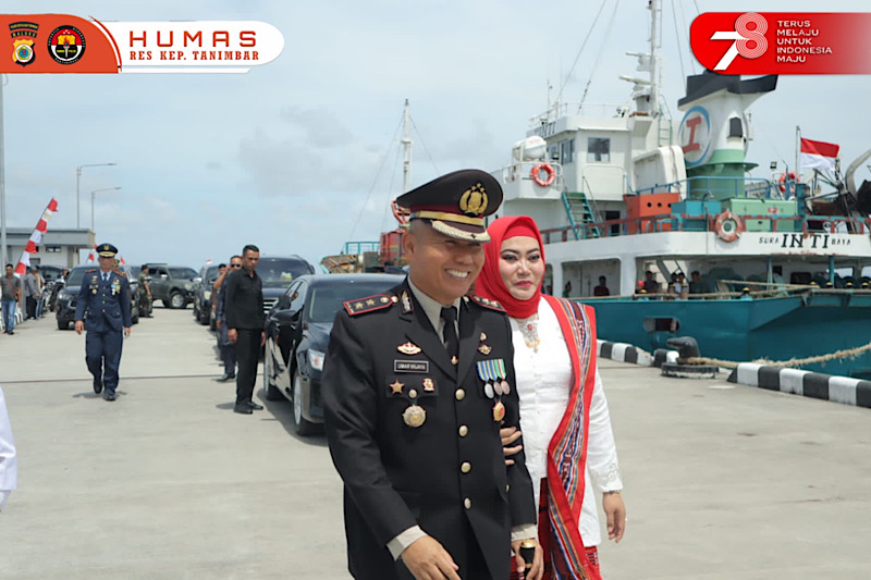 Tribratanews.polrestanimbar.com – Polda Maluku, Polres Kepuluan Tanimbar, Setelah selesai mengikuti upacara detik-detik proklamasi kemerdekaan Republik Indonesia ke-78 di Lapangan Mandriak, Desa Sifnana, Kecamatan Tanimbar Selatan, Kabupaten Kepulauan Tanimbar, Kapolres AKBP Umar Wijaya, S.I.K., didampingi Ketua Bhayangkari Cabang Kepulauan Tanimbar Ny. Anjarie Umar, S.Sos., beserta rombongan hadiri Upacara Tabur Bunga, Kamis (17/8) siang.