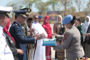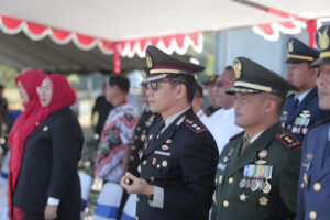 Tribratanews.polrestanimbar.com – Polda Maluku, Kepolisian Resor Kepulauan Tanimbar, Kapolres Kepulauan Tanimbar AKBP Umar Wijaya, S.I.K., M.H., didampingi Ketua Bhayangkari Cabang Ny. Anjarie Umar, S.Sos., bersama Forkopimda hadiri Upacara peringatan HUT Tentara Nasional Indonesia (TNI) ke-79, Sabtu (05/10/24).