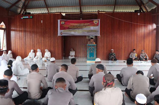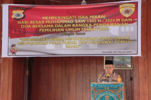 Tribratanews.polrestanimbar.com – Polda Maluku, Kepolisian Resor Kepulauan Tanimbar menggelar peringatan Isra Mi’raj Nabi Muhammad SAW 1445 H dan Doa Bersama dalam Rangka Pengamanan Pemilihan Umum Tahun 2024, Kamis (08/02/24).