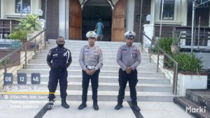 “Melalui kegiatan ini, harapannya semoga terciptanya rasa aman, nyaman dan lancar bagi seluruh Umat Kristiani yang melaksanakan Ibadah/ Misa maupun kepada para pengguna jalan lainnya hingga Masyarakat pada umumnya” tutupnya.
