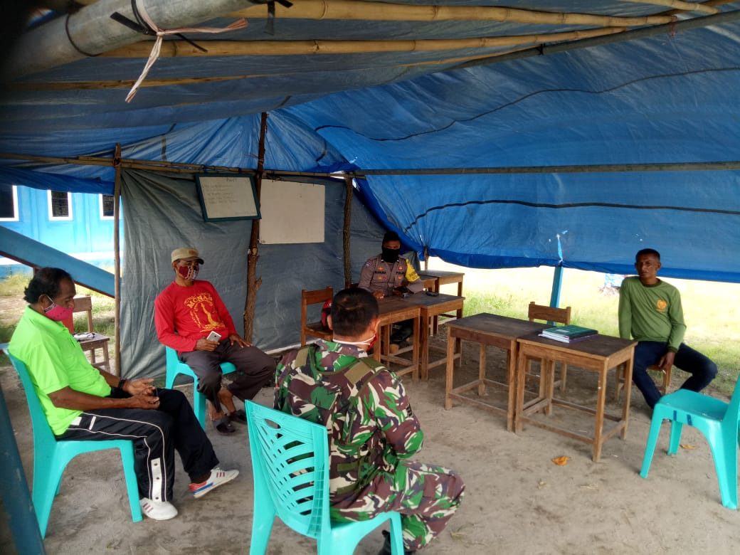 Bhabinkamtibmas Desa Werain Bripda Wanto Isran bersama Babinsa Serka Aris, Melaksanakan Piket pada posko Relawan Covid – 19 Desa Werain.
