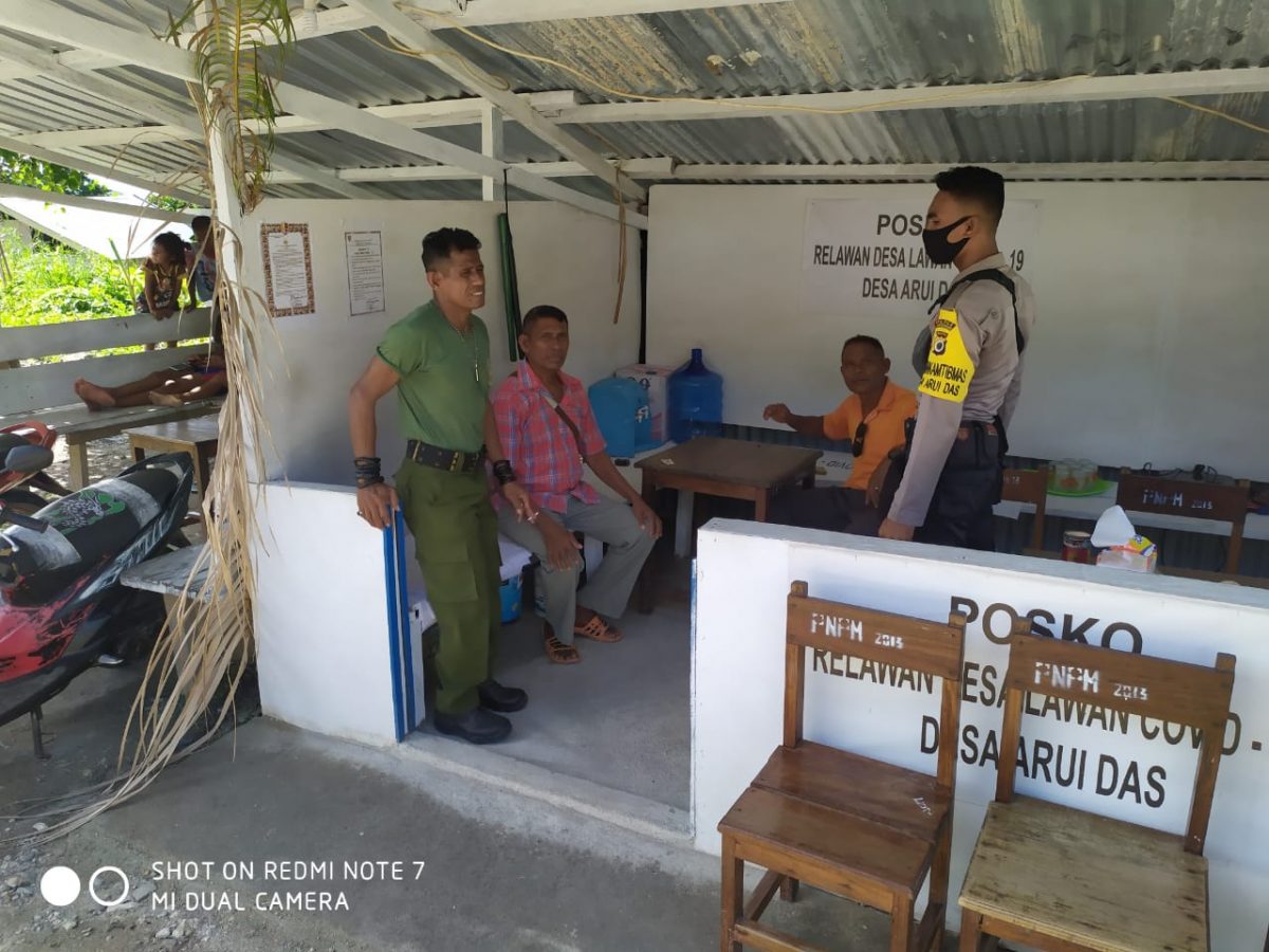 Dalam kegiatan sambang tersebut, Bhabinkamtimas maenghimbau kepada Tim satgas covid 19 agar didalam melaksanakan piket jaga untuk selalu meperhatikan masuk keluarnya Masyarakat dari desa Arui Das.