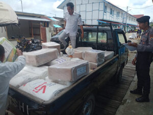 Selanjutnya Kantong plastik sedang berjumlah 346 buah, Kantong plastik kecil berjumlah 692 buah, Kantong plastik ziplock berjumlah 346 buah, Bopoint/pena berjumlah 2.671 buah, Spidol besar berjumlah 12 buah, Spidol kecil berjumlah 4.296 buah dan Alat pembantu tuna netra sebanyak 2 karton.