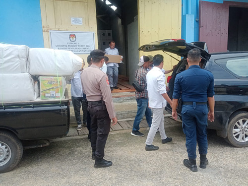 Adapun Logistik yang keluar dari gudang logistik ke kantor KPUD diantaranya Tinta berjumlah 714 buah, Segel berjumlah 42.409 buah, Alat coblos tipe A berjumlah 1.384 buah, Tanda pengenal D berjumlah 12.800 buah, Lem / perekat berjumlah 785 buah, Kantong plastik selongsong berjumlah 1. 730 buah, Kantong plastik besar A berjumlah 3.460 buah.