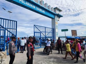 Tribratanews.polrestanimbar.com – Polda Maluku, Polres Kepulauan Tanimbar, personil Polres lakukan Pengamanan kegiatan Keagamaan Umat Katolik dikota Saumlaki terhadap Penjemputan dan Perarakan Arca Kristus Raja Semesta Alam, Sabtu (19/11).