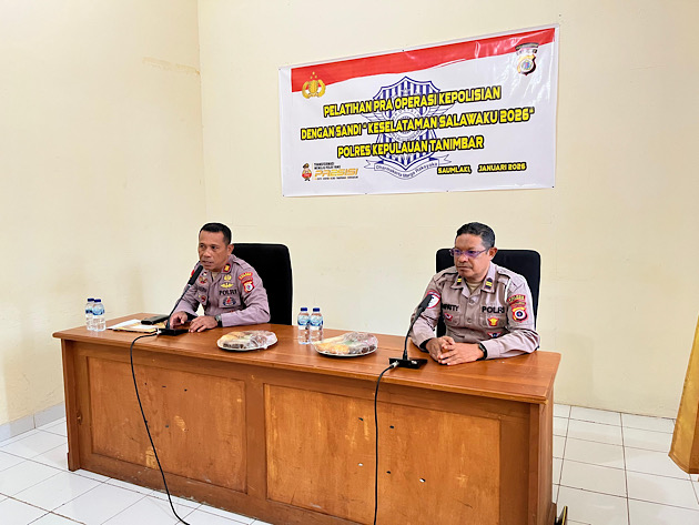 Tribratanews.polrestanimbar.com – Polda Maluku, Kepolisian Resor Kepulauan Tanimbar, Guna memantapkan kesiapan Personel dan menyamakan persepsi dalam bertindak di lapangan, Polres Kepulauan Tanimbar menggelar Latihan Pra Operasi (Lat Pra Ops) Keselamatan Salawaku 2026. Kegiatan ini berlangsung khidmat di Ruang Vicon Mapolres Kepulauan Tanimbar pada, Jumat (30/01/26).